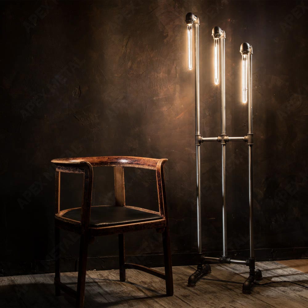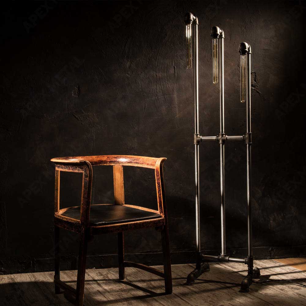 регулировка яркости света диммером, эко-обработка всех металлических деталей, дизайнерская обработка и защита поверхности модели, 3 ретро-лампочки Эдисона 40/60 Вт в комплекте, вес 13,5 кг, регулируются ножки.